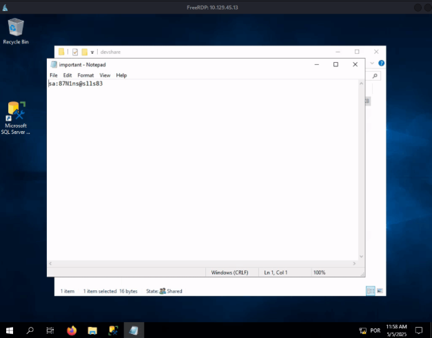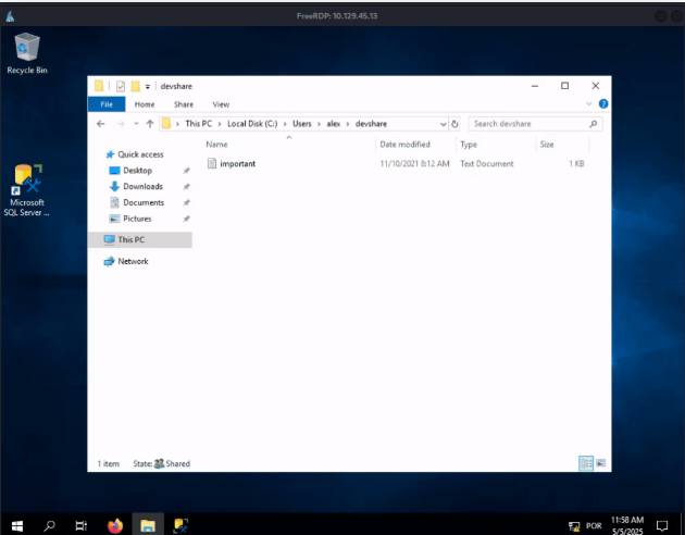 Connect to the discovered share and find the flag.txt file. Submit the contents as the answer.
