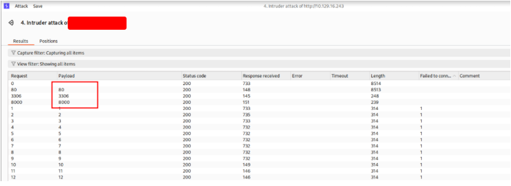 There are 3 ports open: 80, 3306, 8000. Go back to Repeater and Send a resquest on this port to get the flag.