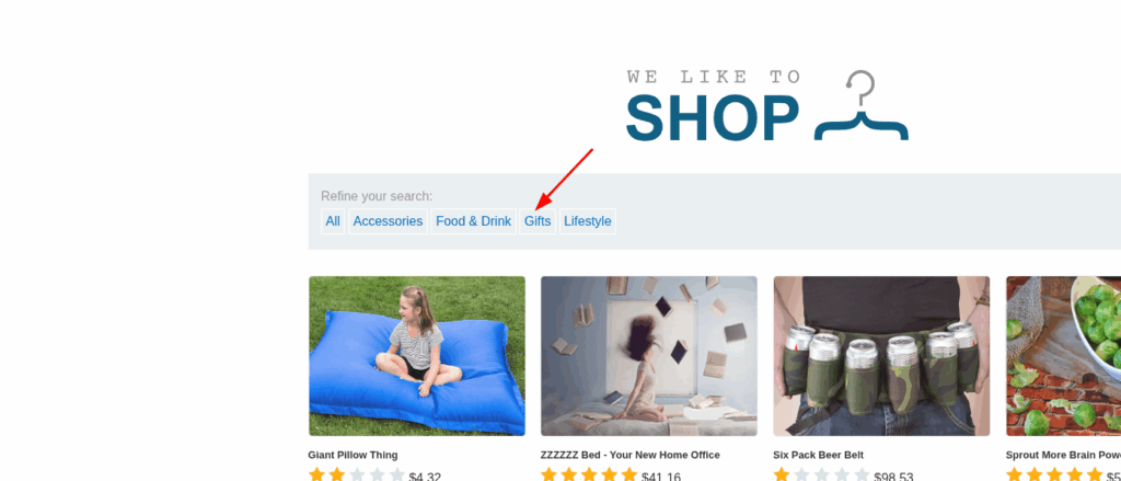 Start the lab and click on the Gifts link