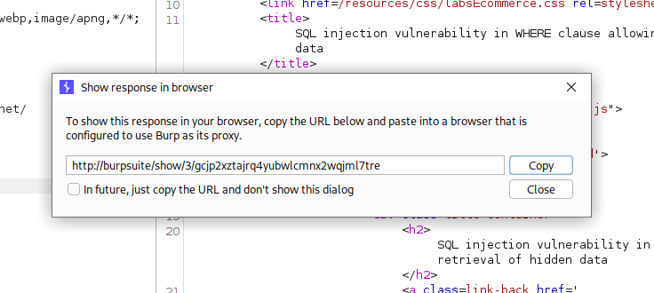 After send it, right click in the request and select Show response in browser. Go back to your browser and paste it to finish the exercise.