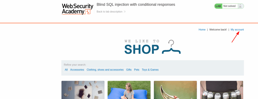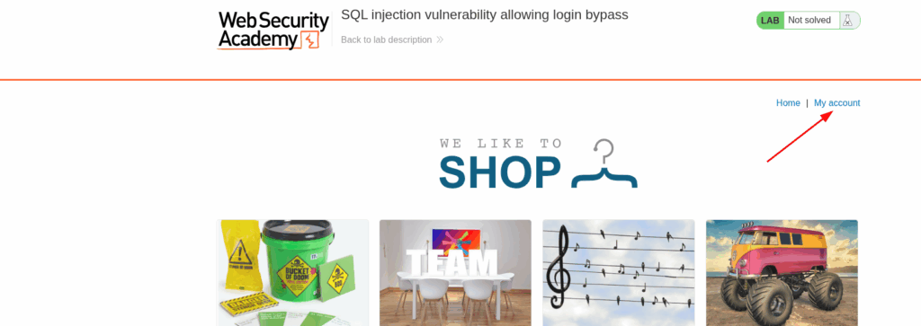 Open the lab and click on the My account link.