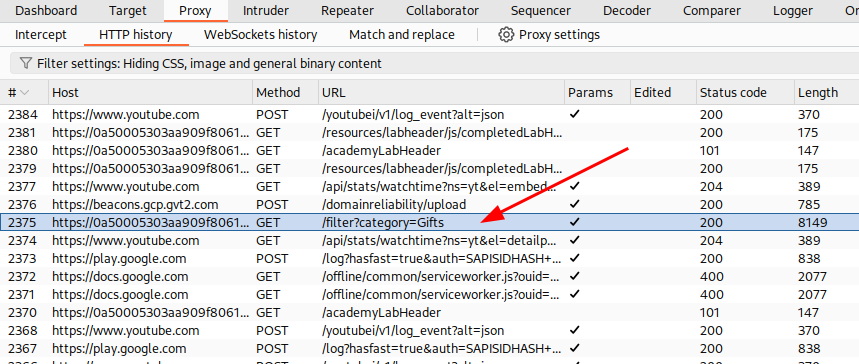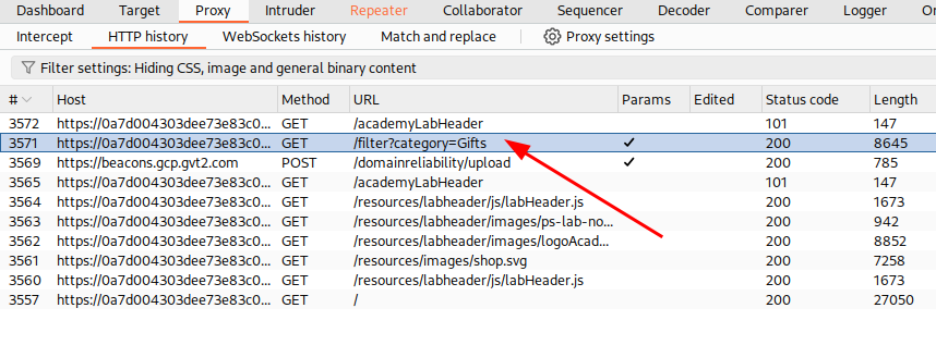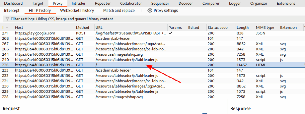 Start the lab and find the request on the Burp Suite
