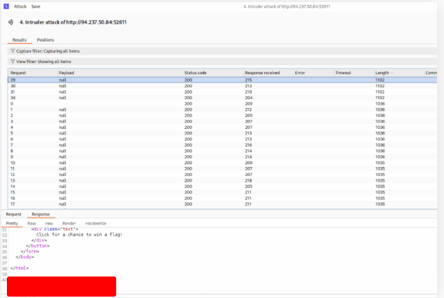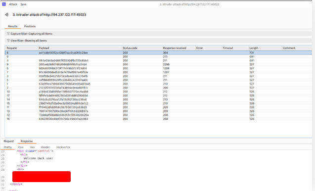 Use Burp Intruder to fuzz for ‘.html’ files under the /admin directory, to find a file containing the flag.