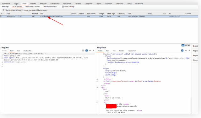 You are using the ‘auxiliary/scanner/http/coldfusion_locale_traversal’ tool within Metasploit, but it is not working properly for you. You decide to capture the request sent by Metasploit so you can manually verify it and repeat it. Once you capture the request, what is the ‘XXXXX’ directory being called in ‘/XXXXX/administrator/..’?