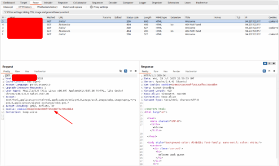 Start the lab and access the page 2x. After see the message “Welcome Back guest”, go to the burp suite.
