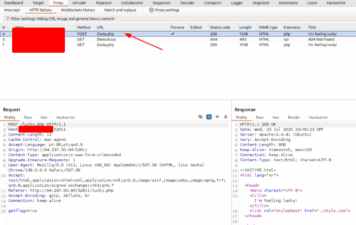 Find the status 200. Right click on it and send it to Repeater