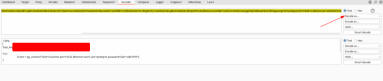Now we need to decode the string using Burp Suite. Decode as base64 and get the flag.