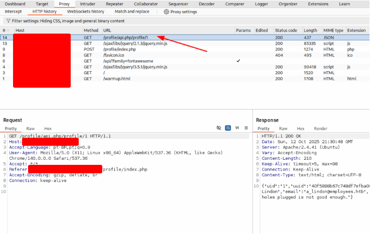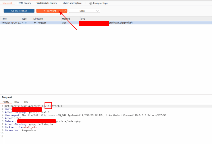 Open the page and click on Edit Profile button. Intercept the request with Burp Suite.
