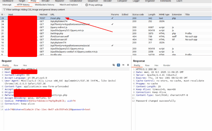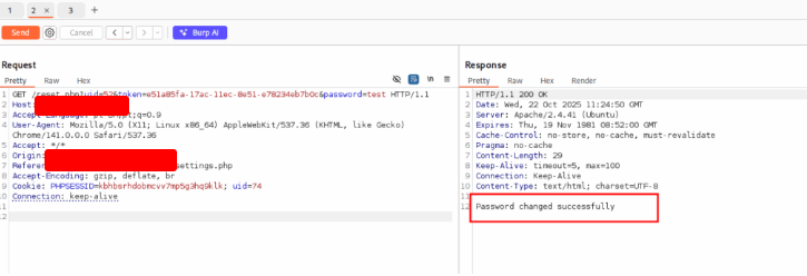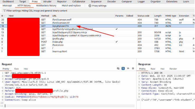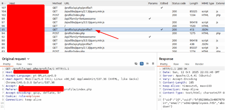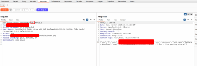 Open the web page and click on Edit Profile. Intercept the request with Burp Suite. Right click on it and choose Send to Repeater.