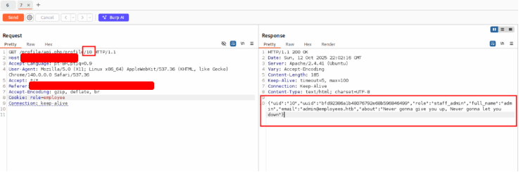 Right click and choose Send to Repeater. Change the value from 1 to 10 (that’s the administrator value).