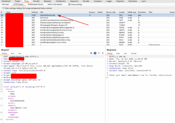 I intercept this request on Burp and I think that I’ll found a XXE vulnerability.