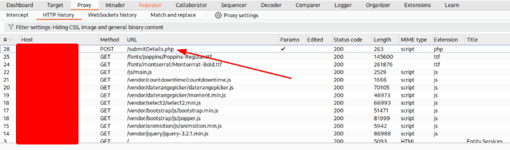 Open the page and fill the form. Intercept the request with Burp Suite. Right click on it and choose Send to Repeater.