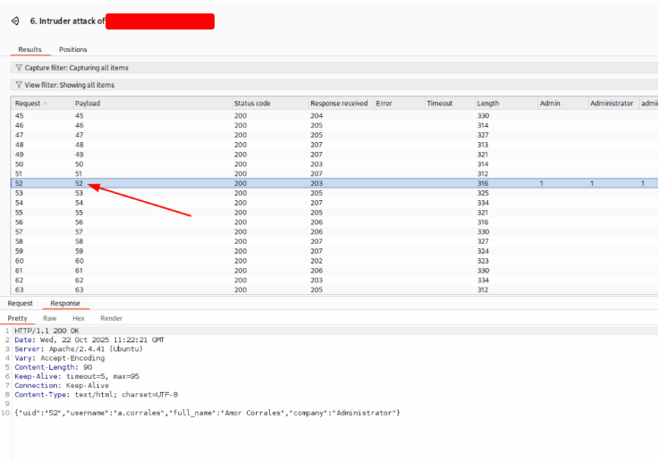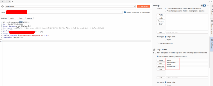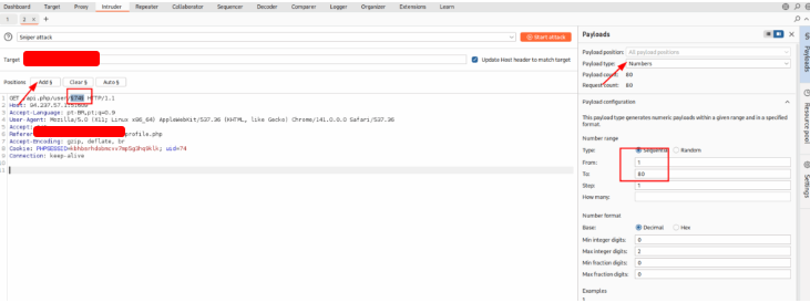 The first and second, you get at the first page. The third, after change your password. Now we want to enumerate all the users. So, right click on the first endpoint and choose Send to Intruder. On the Intruder tab, select the code and click on the Add button. Change the Payload Type to Numbers and the range from 1 to 100.