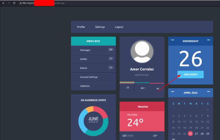 On his dashboard, I found a new board. I clicked on the ADD EVENT button.