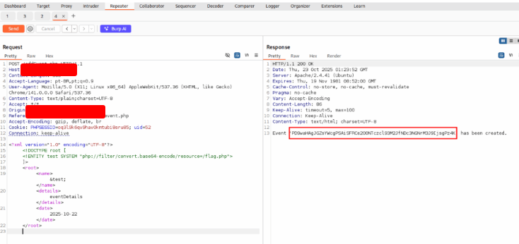 [Wed Oct 22 07:27:32 2025] 127.0.0.1:45538 [200]: GET /xxe.dtd